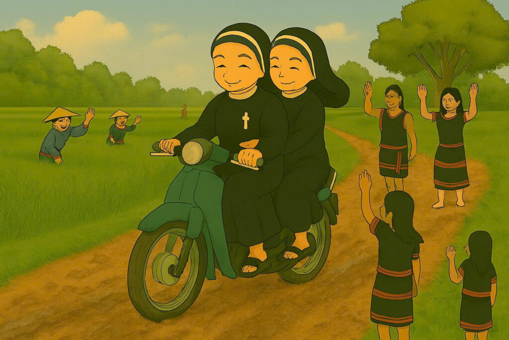 Ngày nhận sứ vụ, chúng tôi hăng hái ra đi với trái tim đầy nhiệt huyết, mang theo giấc mơ Tin Mừng. Nhưng cũng không thể phủ nhận, trong hành trang ấy có cả những bỡ ngỡ, những lo âu thầm lặng. Vùng đất này không chỉ xa lạ về địa lý, mà còn khác biệt về ngôn ngữ, văn hóa và nhịp sống. Mọi thứ đều mới mẻ, từ tiếng nói lạ lẫm vang lên giữa buôn làng, đến những phong tục chưa từng biết, và cả nhịp sống chậm rãi, bình dị mà sâu lắng.