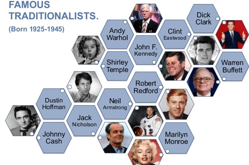 Chào đời trước năm 1945 – đã trải qua sự sụp đổ của thị trường chứng khoán và Thế chiến II – những trải nghiệm ấy giúp cho thế hệ này hiểu rằng sự kiên trì, quyết tâm và làm việc chăm chỉ sẽ được đền đáp. Những nỗ lực của họ đã dẫn đến chiến thắng trong Thế chiến II và sự chuyển đổi kinh tế từ nghèo đói sang thịnh vượng. Thế hệ này coi trọng lòng yêu nước, giáo dục, lòng can đảm, sự chăm chỉ và đức kiên trì. Những người của thế hệ này xứng đáng nhận được sự tôn trọng vì đã mang lại nhiều quyền tự do cho những thế hệ kế tiếp.
