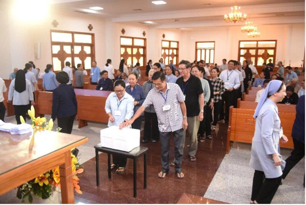 Buổi chiều, Đại hội tiến hành bầu Ban Điều hành nhiệm kỳ 2025–2028 trong tinh thần cầu nguyện và phân định. Niềm vui tràn ngập khi danh sách 10 thành viên được công bố như sau: