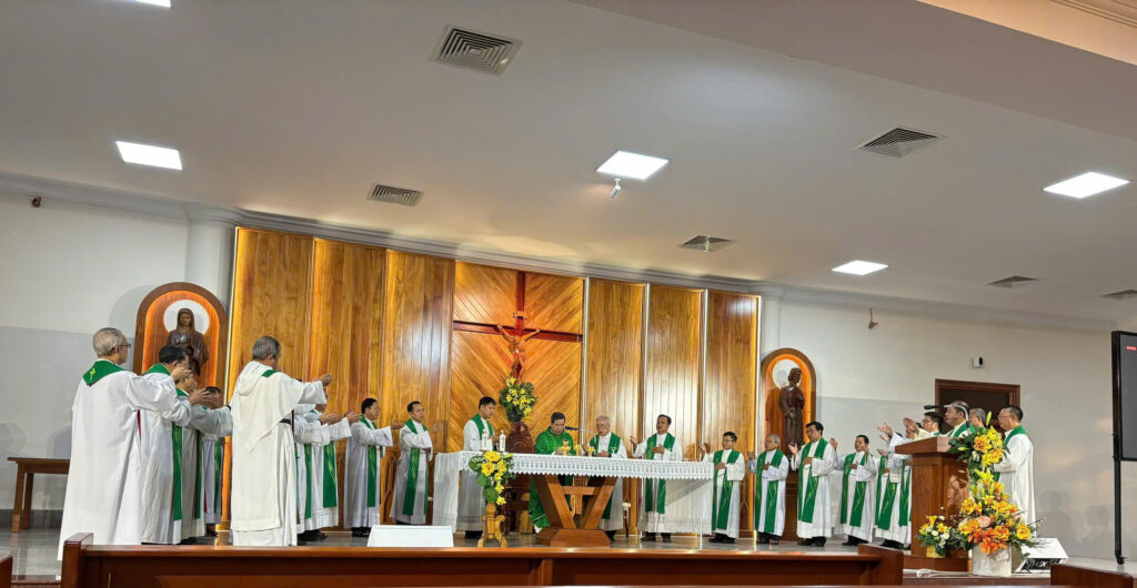 Trong bầu khí linh thiêng của Trung tâm Hành hương Đức Mẹ Núi Cúi – Giáo phận Xuân Lộc, các Bề Trên và đại diện Bề Trên của những Hội dòng, Tu hội và Tu đoàn Tông đồ trên toàn quốc đã quy tụ về đây để tham dự Đại hội Liên hiệp Bề Trên Thượng cấp Việt Nam lần thứ VIII, diễn ra từ ngày 17 đến 21 tháng 11 năm 2025, với chủ đề: “Sống ơn gọi thừa sai trong thời đại mới.”