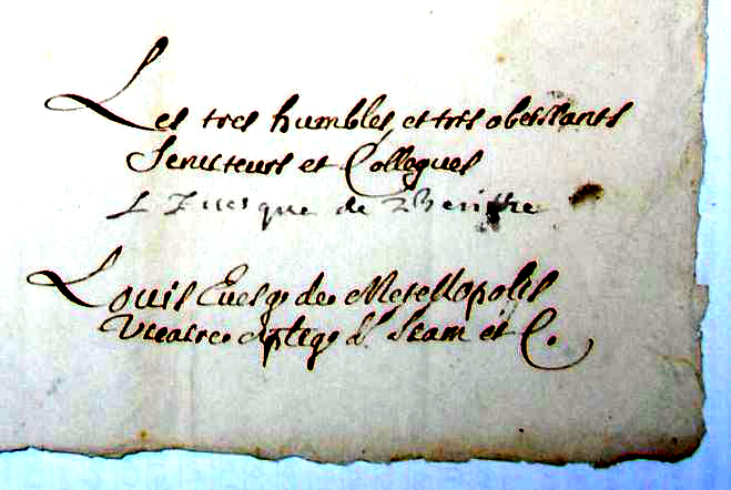 Hình: Chữ ký của Đức cha Pierre Lambert de la Motte