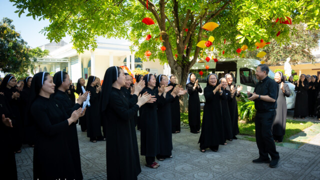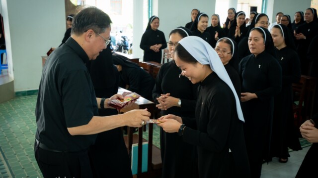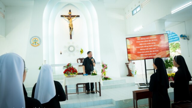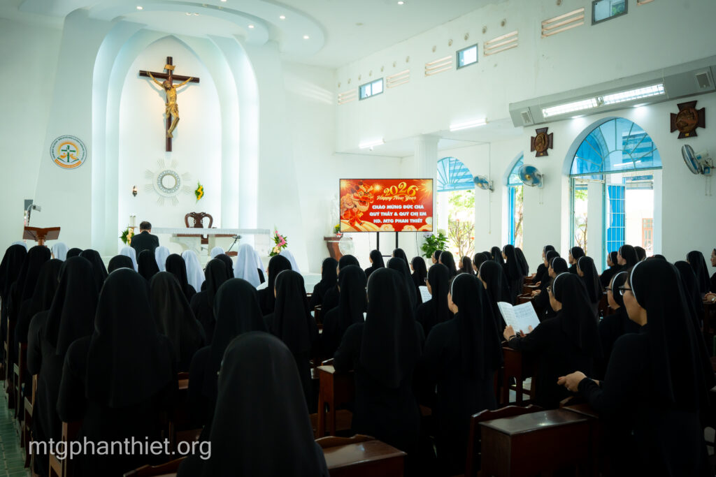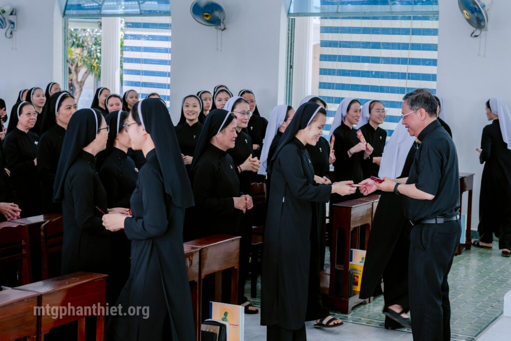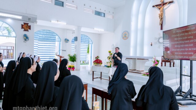 Trong tâm tình mục tử, Đức cha Giuse gửi lời chúc mừng năm mới đến toàn thể chị em. Ngài cầu chúc mỗi người luôn tràn đầy bình an, trung tín với ơn gọi và hăng say trong sứ vụ được trao phó. Đức cha trao lì xì mừng tuổi cho các chị em hiện diện cũng như vắng mặt, như một dấu chỉ của sự quan tâm và hiệp thông mục tử.