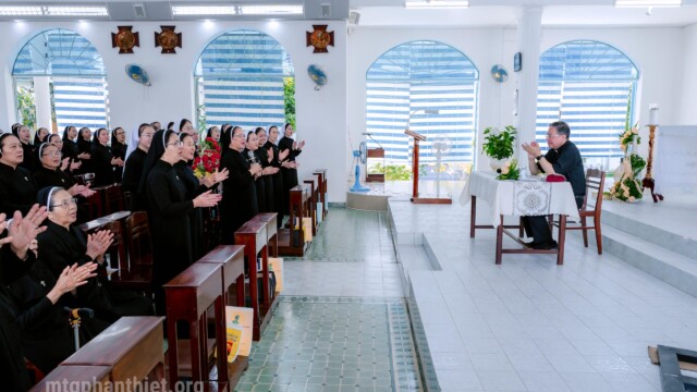 Sáng thứ Hai, ngày 09.02.2026, chị em Hội dòng Mến Thánh Giá Phan Thiết hân hoan chào đón Đức cha Giuse Đỗ Mạnh Hùng – Giám mục Giáo phận Phan Thiết đến thăm và chúc Tết trong bầu khí hiệp thông, ấm áp tình gia đình của những ngày cận kề năm mới.