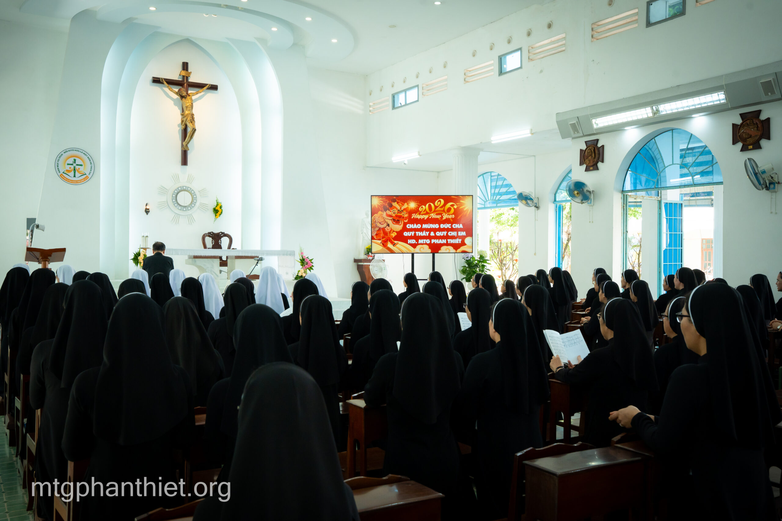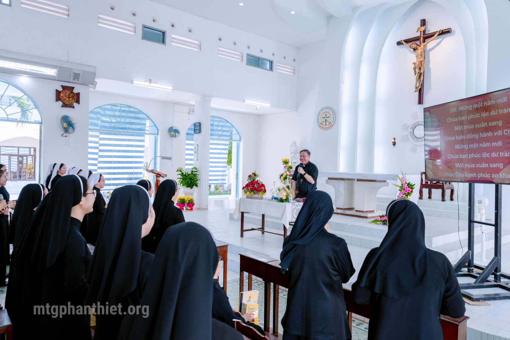 Sáng thứ Hai, ngày 09.02.2026, chị em Hội dòng Mến Thánh Giá Phan Thiết hân hoan chào đón Đức cha Giuse Đỗ Mạnh Hùng – Giám mục Giáo phận Phan Thiết đến thăm và chúc Tết trong bầu khí hiệp thông, ấm áp tình gia đình của những ngày cận kề năm mới.