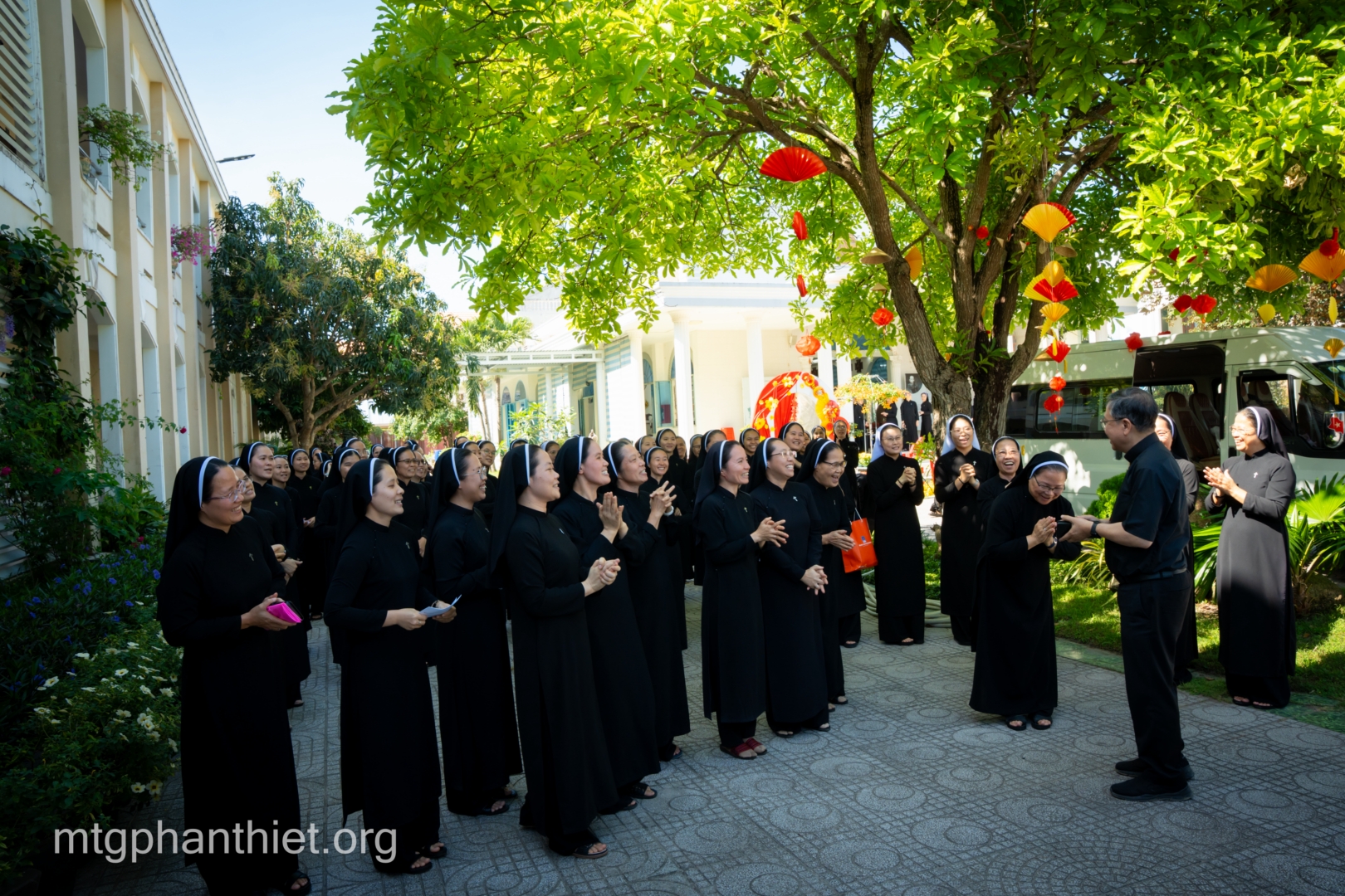 Buổi thăm viếng khép lại với phép lành của Đức cha dành cho cộng đoàn. Trong niềm vui và tâm tình tạ ơn, chị em cùng dâng lên Thiên Chúa bài ca cảm tạ, ghi dấu một cuộc gặp gỡ đầy ý nghĩa. Sau phần chụp hình lưu niệm, Đức cha, quý thầy cùng chị em tham dự bữa ăn trưa tất niên, chia sẻ niềm vui trong những ngày cận kề năm mới, trong bầu khí ấm áp tình gia đình.