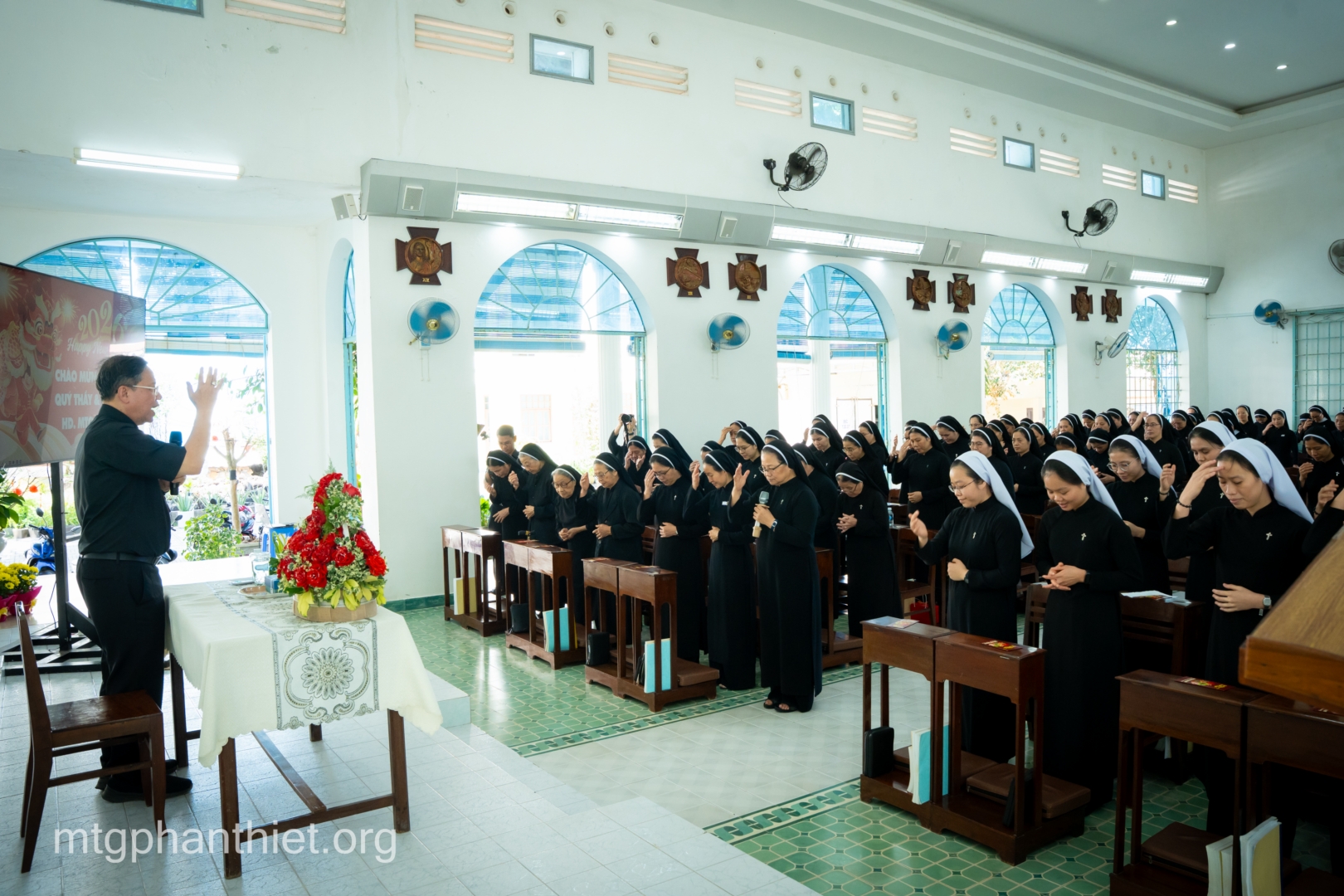 Trong tâm tình mục tử, Đức cha Giuse gửi lời chúc mừng năm mới đến toàn thể chị em. Ngài cầu chúc mỗi người luôn tràn đầy bình an, trung tín với ơn gọi và hăng say trong sứ vụ được trao phó. Đức cha trao lì xì mừng tuổi cho các chị em hiện diện cũng như vắng mặt, như một dấu chỉ của sự quan tâm và hiệp thông mục tử.