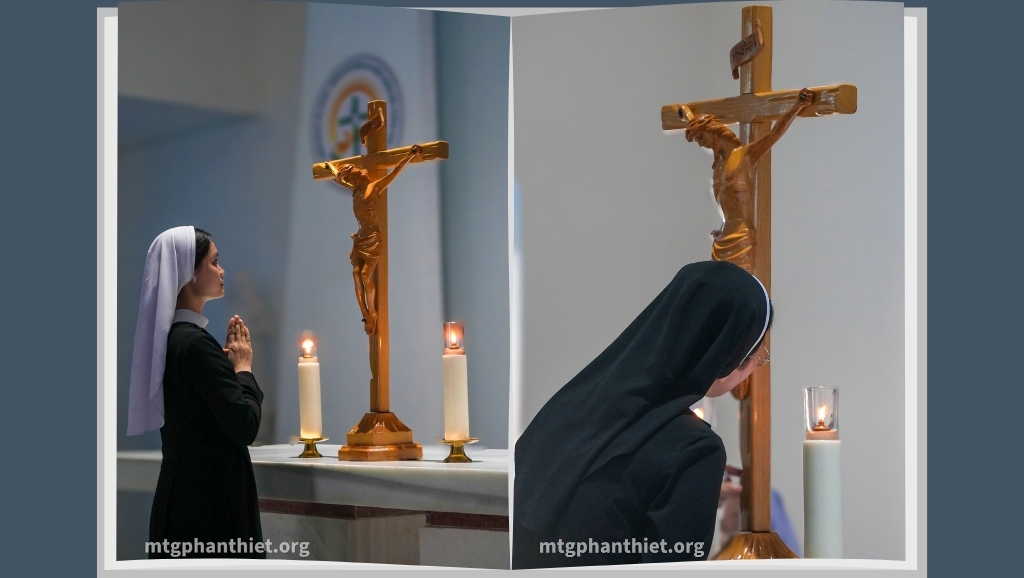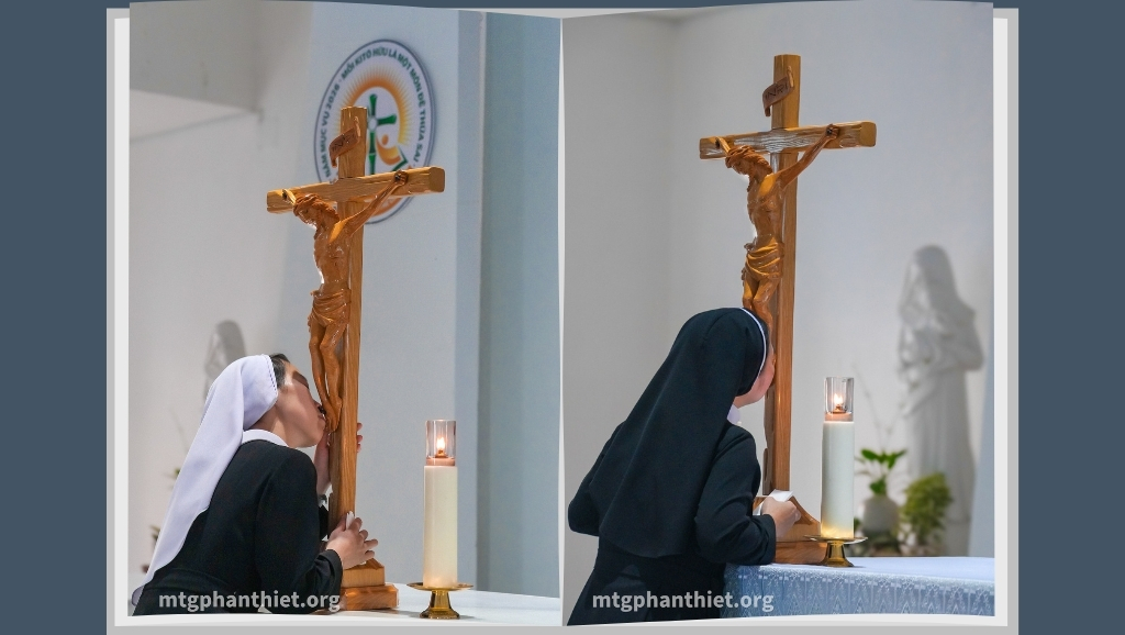 Trong bầu khí linh thiêng của chiều Thứ Sáu Tuần Thánh, người nữ tu Mến Thánh Giá lặng bên Thập Giá để chiêm ngắm tình yêu tự hiến của Đức Kitô. Từ cử chỉ suy tôn và hôn chân Chúa, một hành trình nội tâm được mở ra: sám hối, tri ân và phó thác trong niềm hy vọng vào ơn cứu độ.