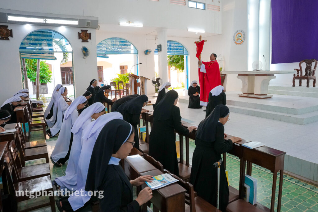 Chiều Thứ Sáu Tuần Thánh năm nay, khi được tham dự nghi thức tưởng niệm cuộc Thương khó của Chúa cùng chị em trong Nguyện đường của cộng đoàn Nhà Mẹ Hội dòng, lòng tôi lắng lại trong bầu khí linh thiêng của những lời Thánh vịnh sâu lắng cùng các bài ca trong nghi thức cộng đoàn suy tôn Thánh Giá và hôn chân Chúa.