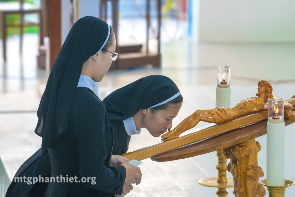 Khi xếp hàng cùng chị em, chầm chậm tiến lên hôn chân Chúa, tôi như chạm vào mầu nhiệm của tình yêu ấy theo một cách rất riêng. Cử chỉ quỳ gối, cúi mình hôn chân Chúa không chỉ là một nghi thức phụng vụ, nhưng là lời đáp trả của con tim: vừa khiêm tốn sám hối, vừa tri ân sâu xa trước tình yêu đã trao ban đến cùng. Trong giây phút ấy, tôi nhận ra sự mong manh của chính mình và học lại cách phó thác, để cho tình yêu của Chúa chạm đến và biến đổi.