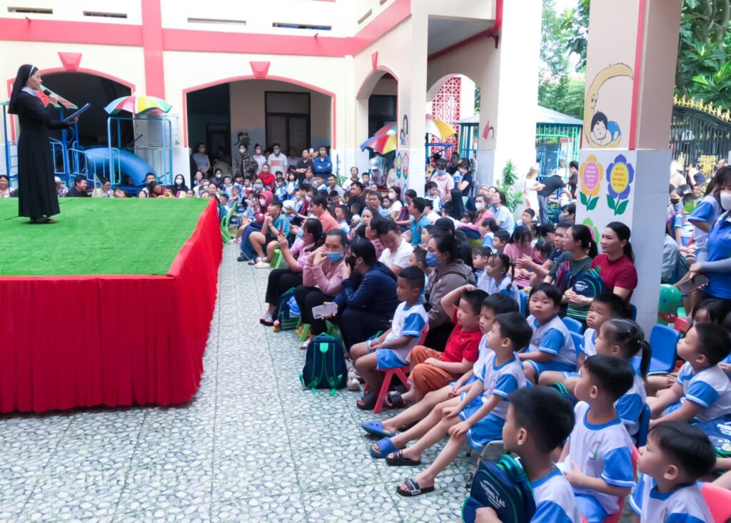 Hiện diện trong ngày khai giảng có quý vị quan khách, các nữ tu phục vụ trong lãnh vực giáo dục, đội ngũ giáo viên cộng tác và quý phụ huynh, cùng các bé. Tiếng hát, nụ cười và những điệu múa ngây thơ của các em đã làm rạng ngời niềm vui của ngày tựu trường.