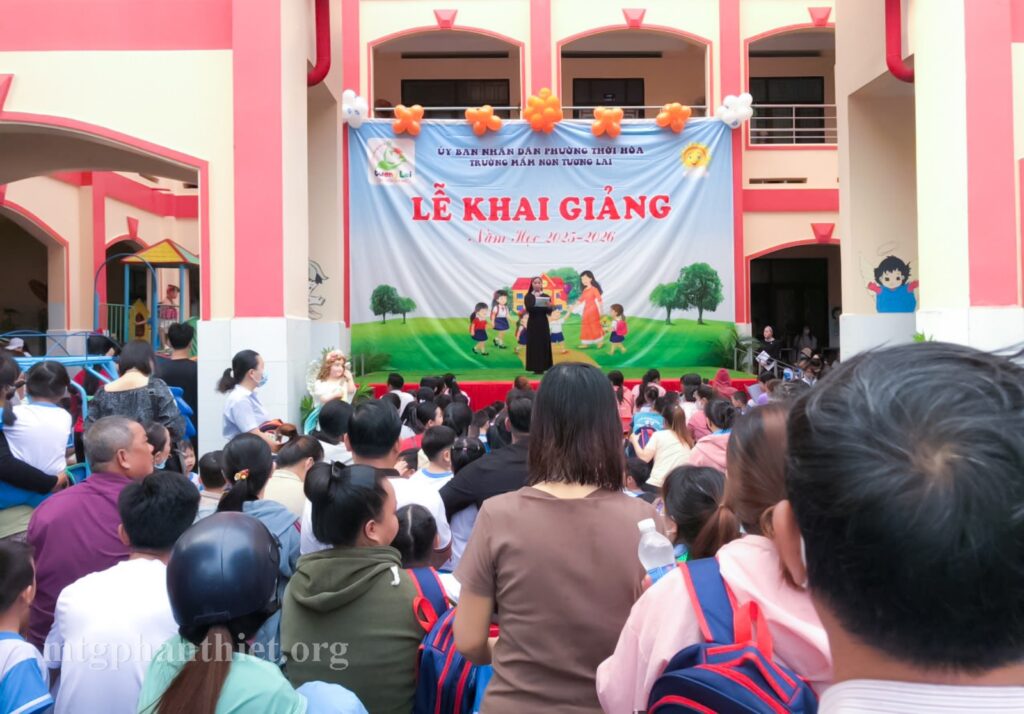Ngày 5/9/2025, trong niềm vui chung của cả nước, các trường mẫu giáo thuộc Hội dòng Mến Thánh Giá Phan Thiết đã cùng hân hoan khai giảng năm học mới. Niềm vui ấy lan tỏa tại các trường Tuổi Thơ, Hà Văn (xã Hoài Đức), Hòa Bình (xã Trà Tân), Tuổi Ngọc, Hướng Dương (xã Phước Hội) tỉnh Lâm Đồng hay tại Trường Mẫu Giáo Tương Lai tỉnh Bình Dương, cũng như ở nhiều cơ sở giáo dục khác của Hội dòng.