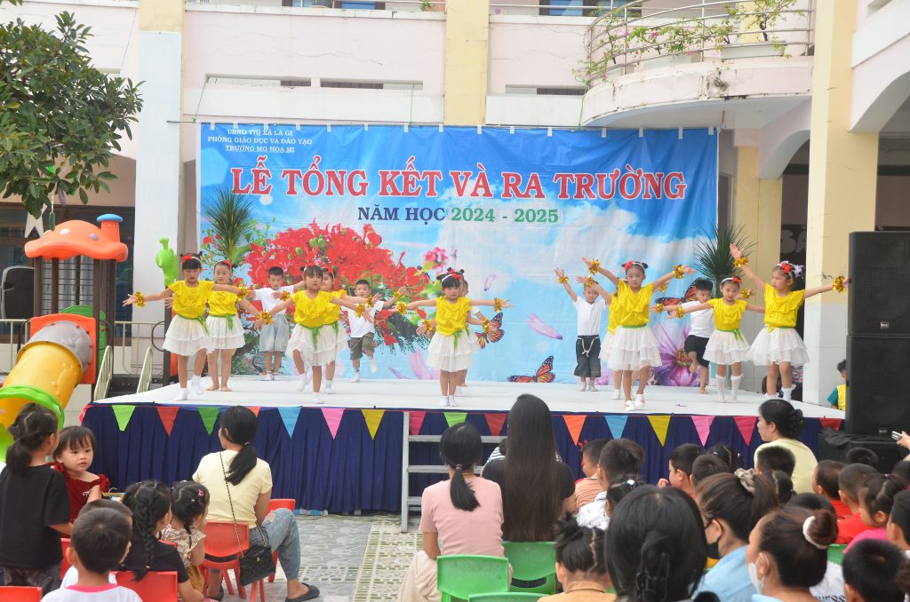 Sáng ngày 29/5/2025, không khí tại Trường Mẫu Giáo Họa Mi rộn ràng, tưng bừng và náo nhiệt khi nhà trường tổ chức Lễ Tổng kết Năm học 2024-2025. Đây là dịp để nhìn lại một năm học đầy ắp những kỷ niệm đẹp, những thành quả đáng tự hào của cả cô và trò.