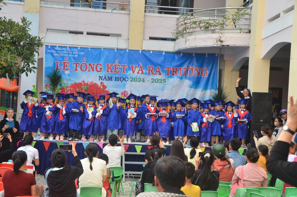 Cuối chương trình là nghi thức ra trường dành cho Khối Lá. Lời ca “Tạm biệt búp bê thân yêu, tạm biệt gấu misa nhé. Tạm biệt Thỏ trắng xinh xinh, mai em vào lớp 1 rồi… nhớ lắm, quên sao được trường Mầm Non thân yêu” được toàn thể hơn 100 học sinh khối lá cất lên làm tất cả mọi người hiện diện đều ngậm ngùi.