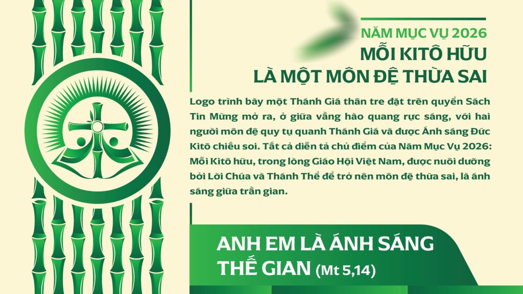 Văn phòng Thư ký Hội đồng Giám mục Việt Nam giới thiệu logo chính thức cho năm Mục vụ 2026 của Giáo hội Việt Nam với chủ đề: Mỗi Kitô hữu là một môn đệ thừa sai: “Anh em là ánh sáng thế gian” (Mt 5,14).