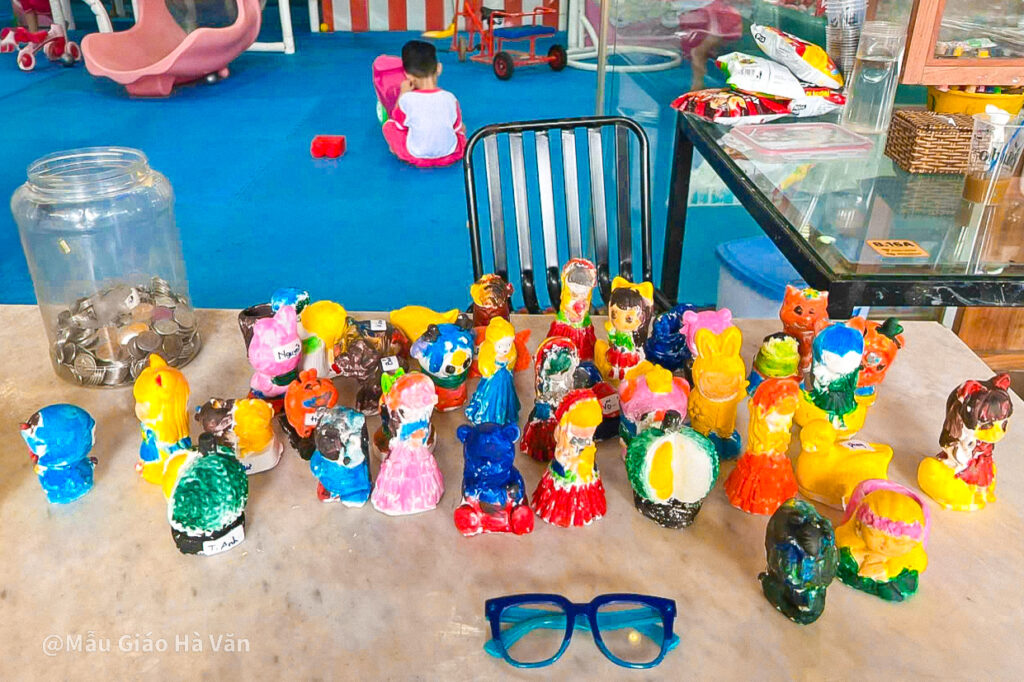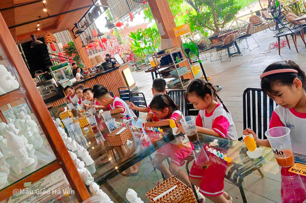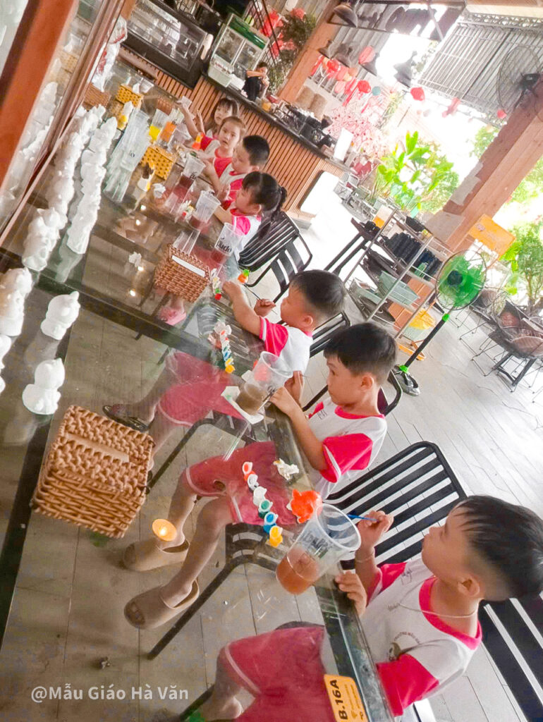 Hoạt động tô tượng cũng thu hút các bé cách đặc biệt. Mỗi em chọn cho mình một bức tượng nhỏ, rồi chăm chú tô màu theo ý thích. Có bé nâng niu sản phẩm của mình và nói: “Con tô cái này để mang về cho mẹ!”. Những nét vẽ còn đơn sơ nhưng chứa đựng cả niềm vui và sự sáng tạo hồn nhiên của tuổi thơ.