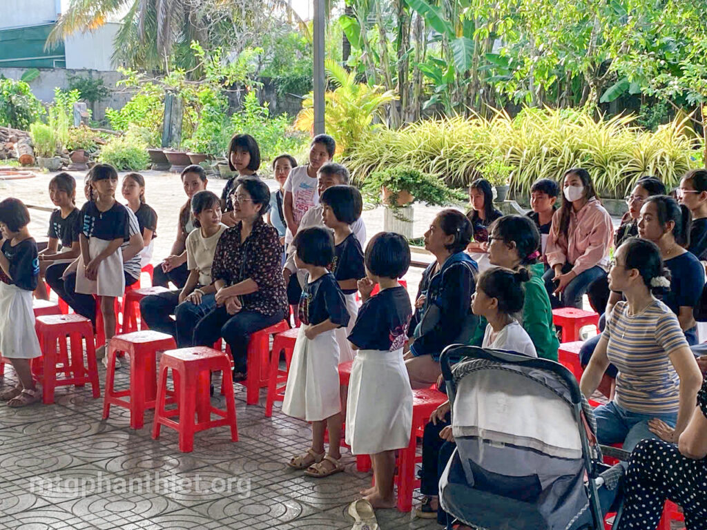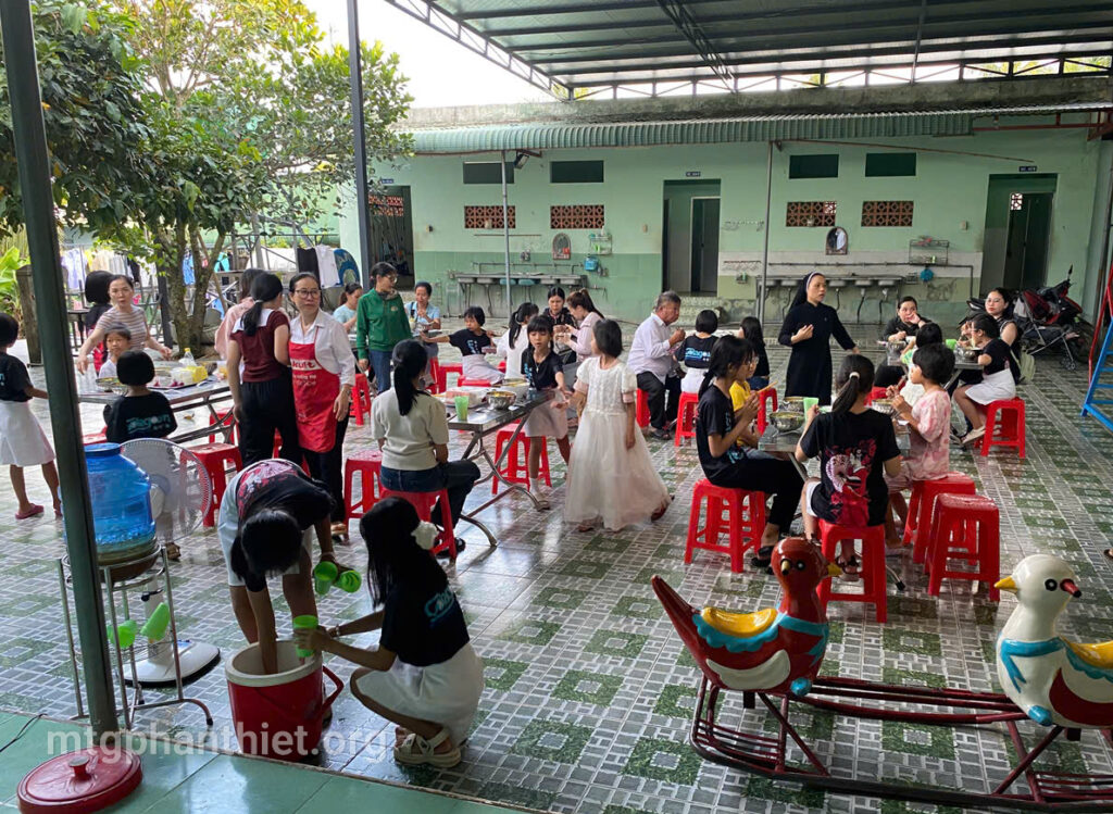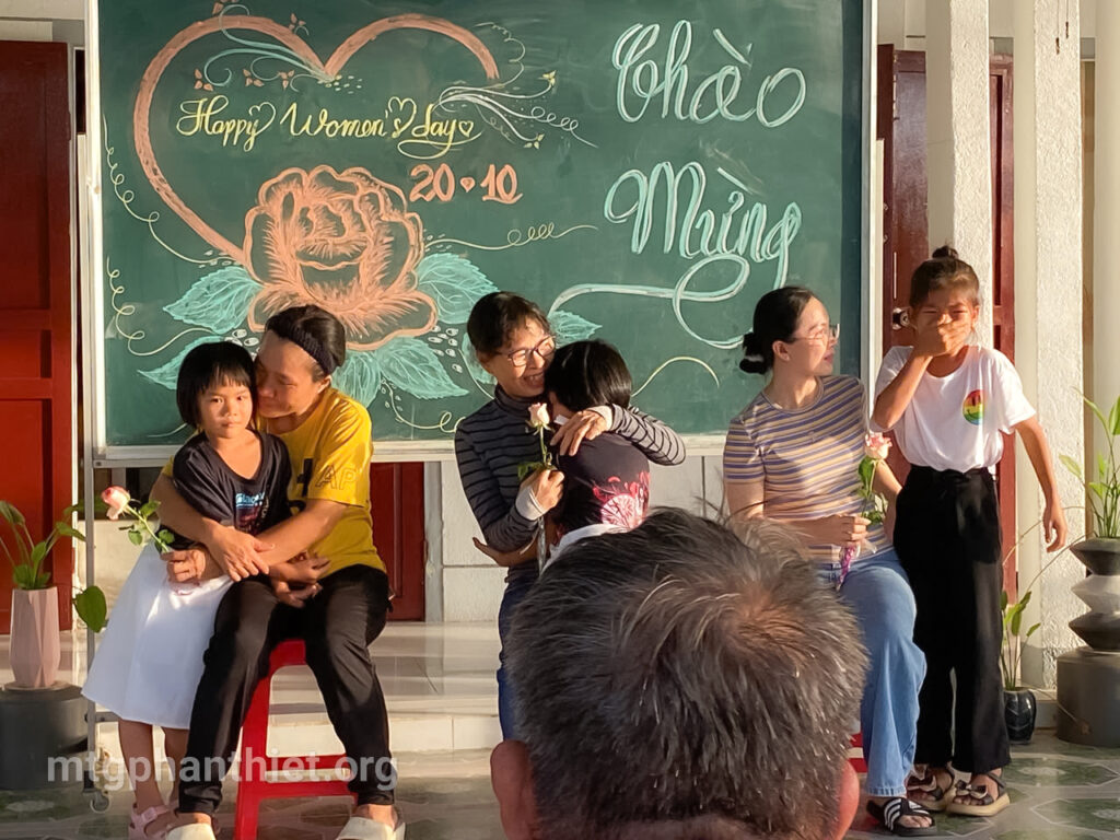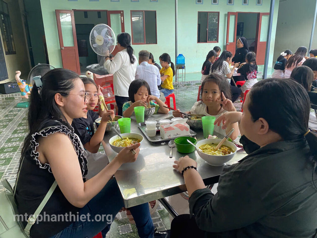 Sau phần viết thư và tặng hoa tri ân, văn nghệ bỏ túi, mọi người cùng chia sẻ bữa cơm tối thân tình, cùng chuyện trò, cùng cười, cùng khóc – như một đại gia đình trong Chúa. Giữa khung cảnh đơn sơ, ấm áp, tình mẹ con được nối kết, yêu thương được khơi dậy, và niềm hy vọng lại được thắp lên nơi từng ánh mắt, nụ cười.