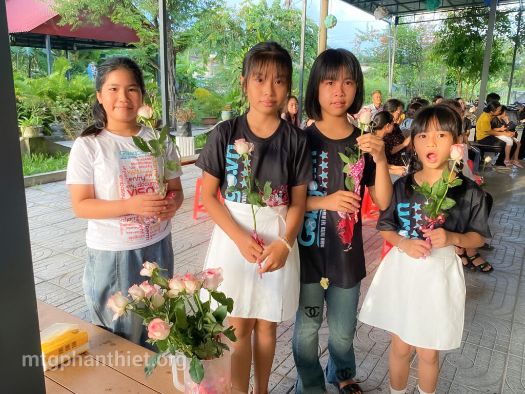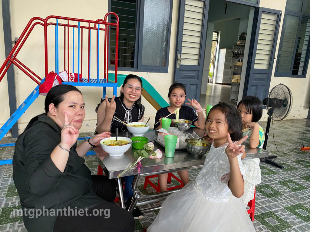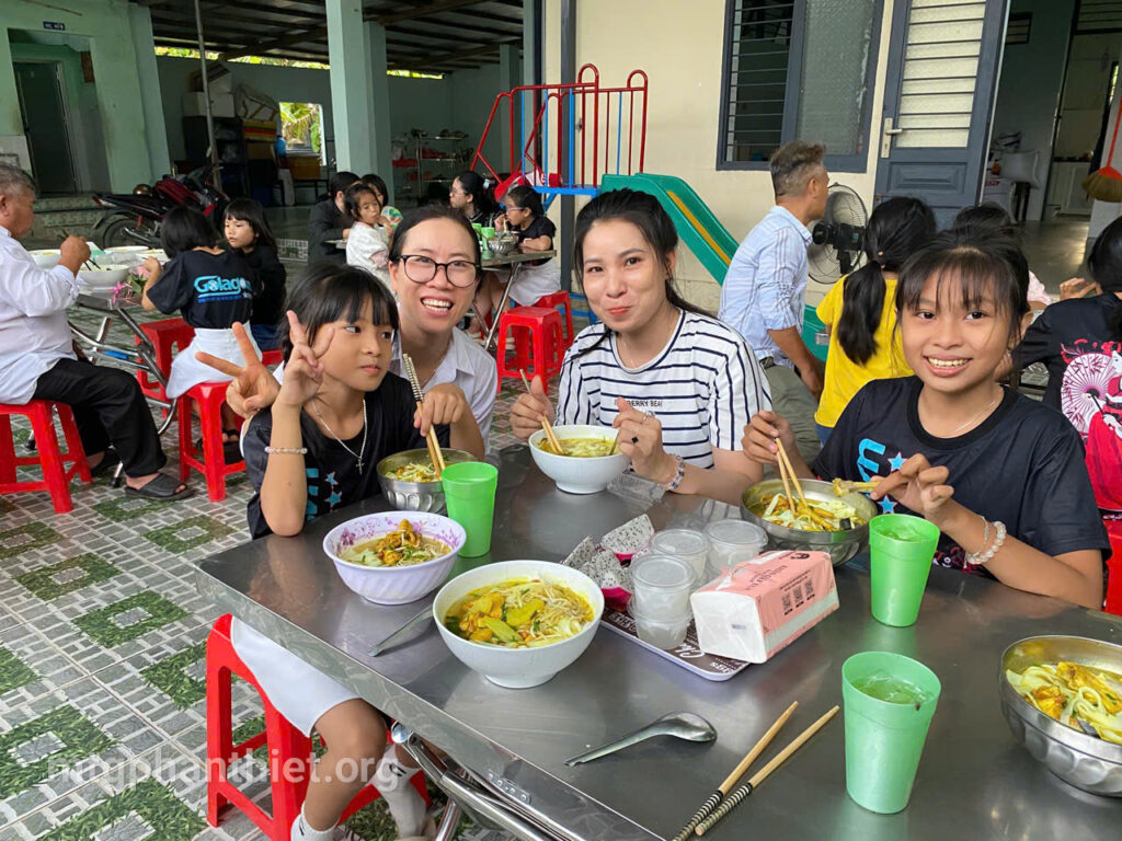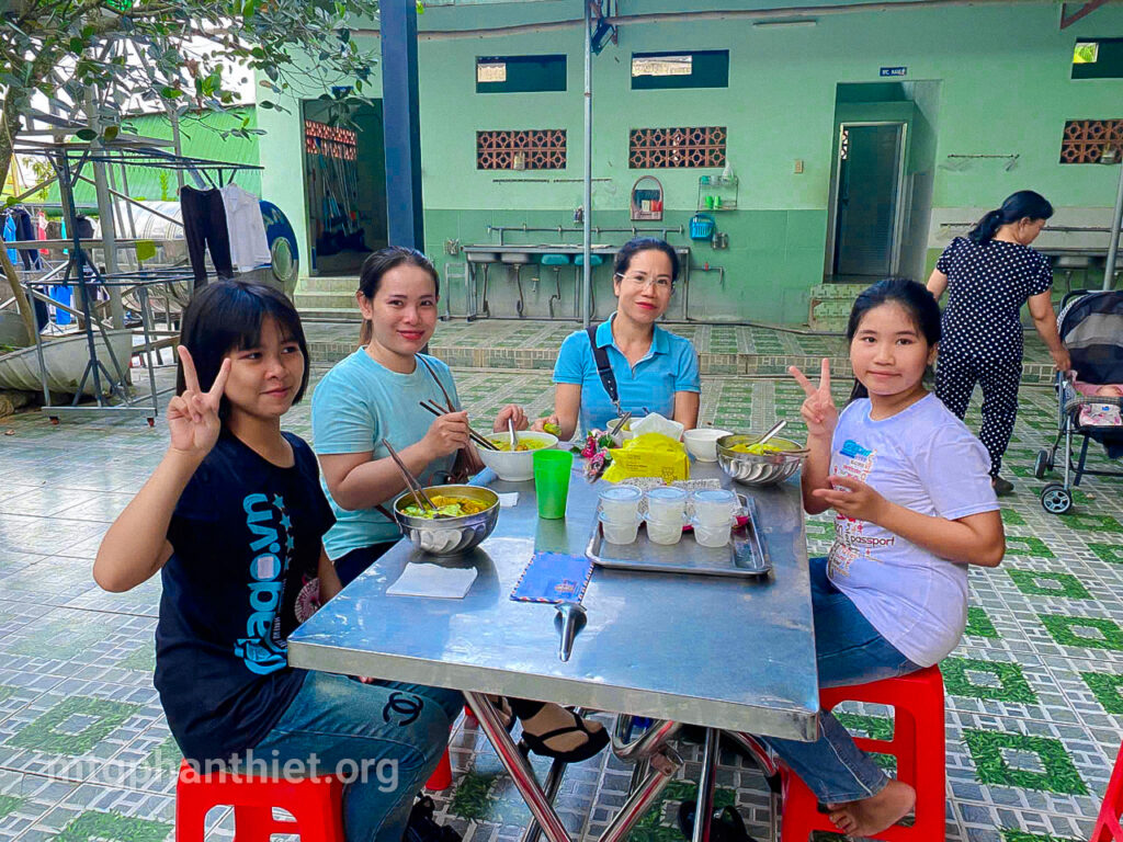 Sau phần viết thư và tặng hoa tri ân, văn nghệ bỏ túi, mọi người cùng chia sẻ bữa cơm tối thân tình, cùng chuyện trò, cùng cười, cùng khóc – như một đại gia đình trong Chúa. Giữa khung cảnh đơn sơ, ấm áp, tình mẹ con được nối kết, yêu thương được khơi dậy, và niềm hy vọng lại được thắp lên nơi từng ánh mắt, nụ cười.