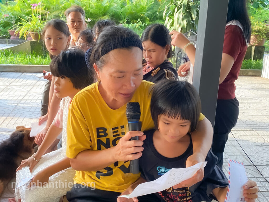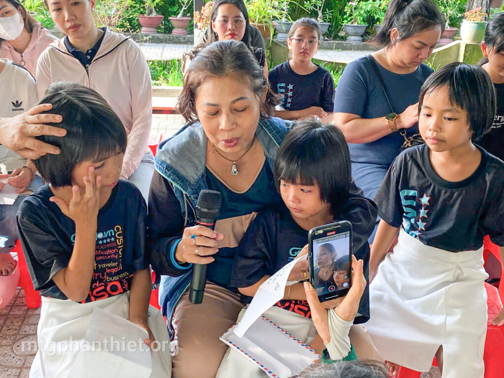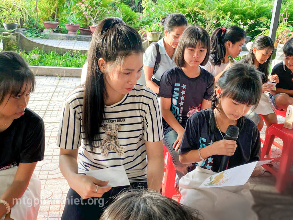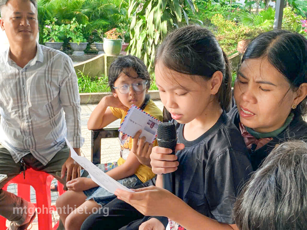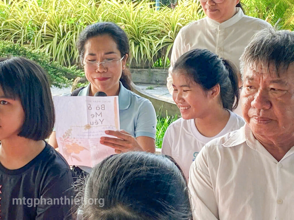 Trong chương trình, các em đã tự tay viết những lá thư gửi đến bà và mẹ, bày tỏ bao tâm tình chân thành, cảm động. Có những đôi mắt ngấn lệ khi người mẹ lặng nghe con đọc lên từng dòng chữ yêu thương, có em chỉ biết cúi đầu nức nở vì người thân giờ đã ở nơi xa thật xa. Những giọt nước mắt ấy – của nhớ thương, của biết ơn – như những hạt mầm tình yêu âm thầm lớn lên trong ân sủng Chúa.