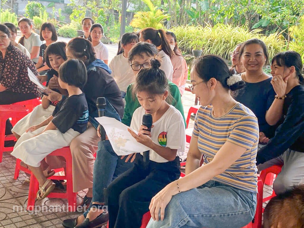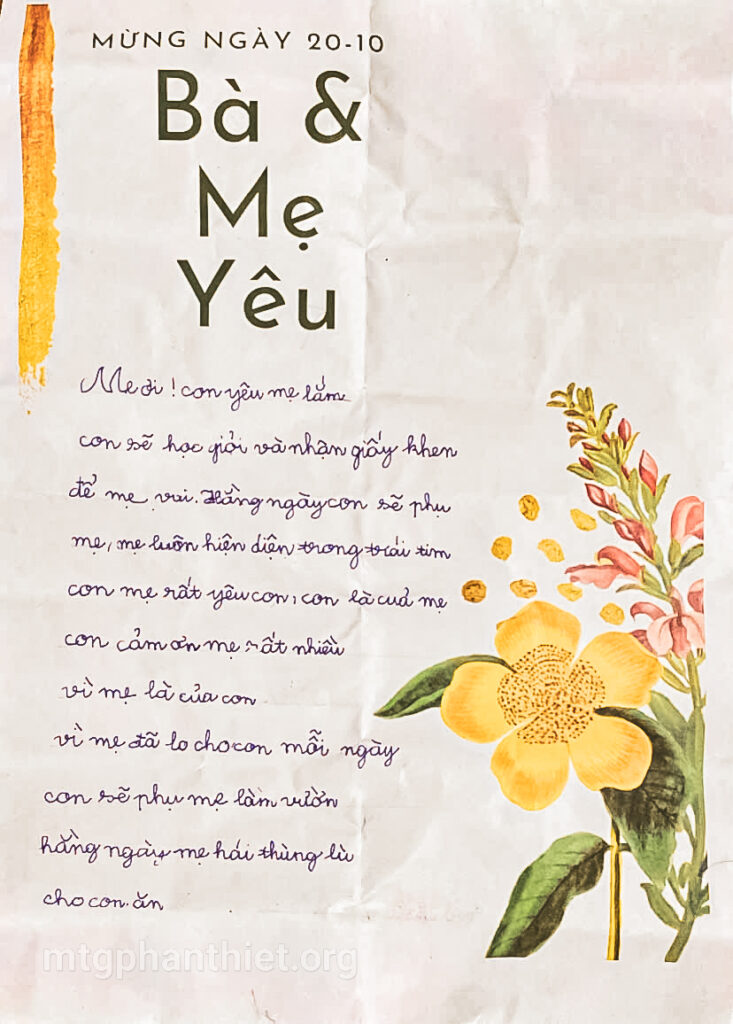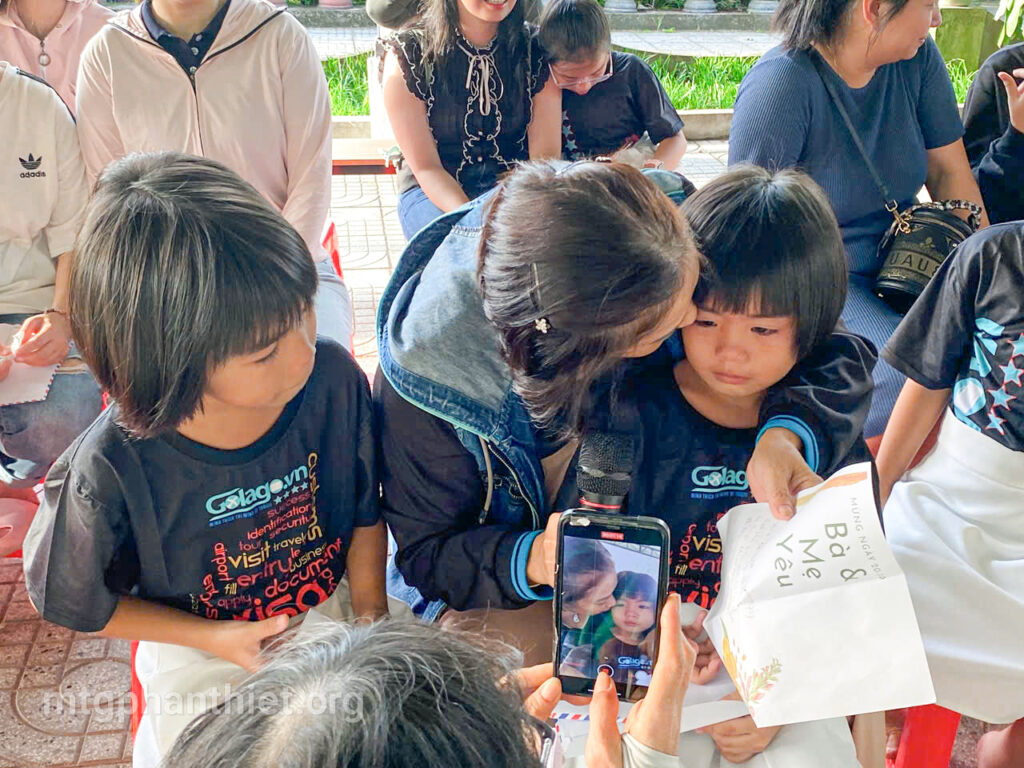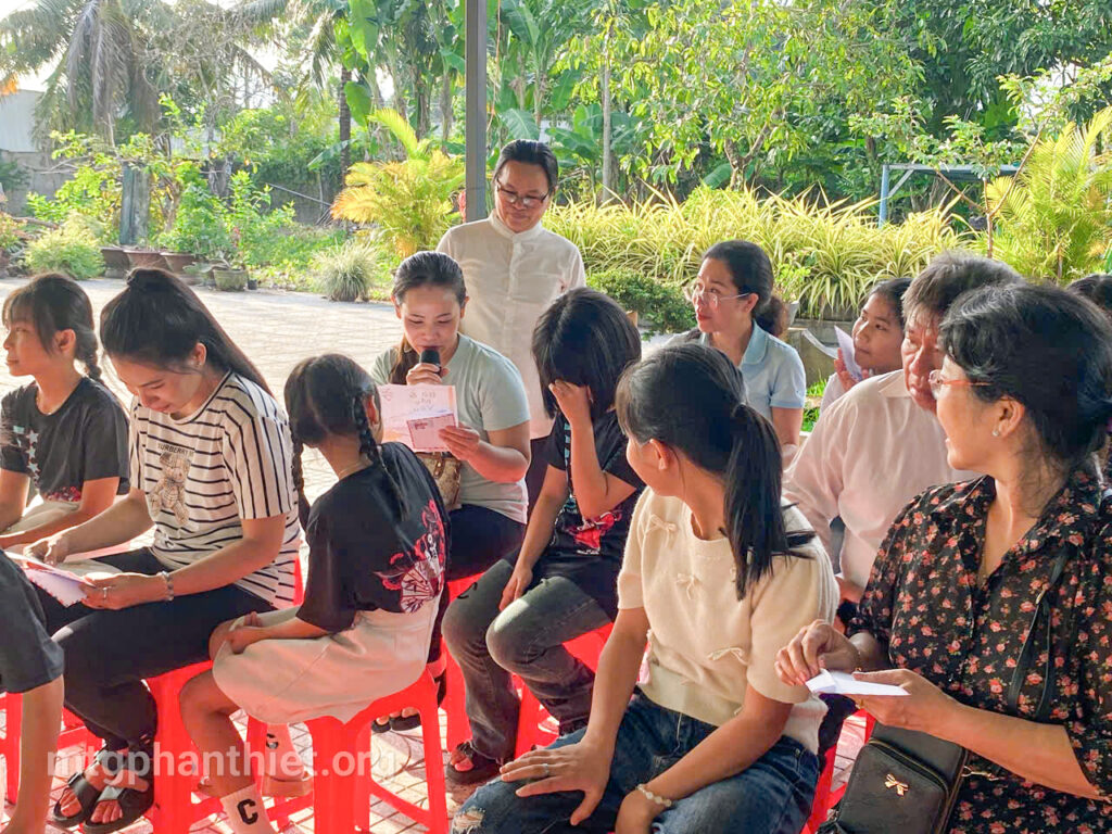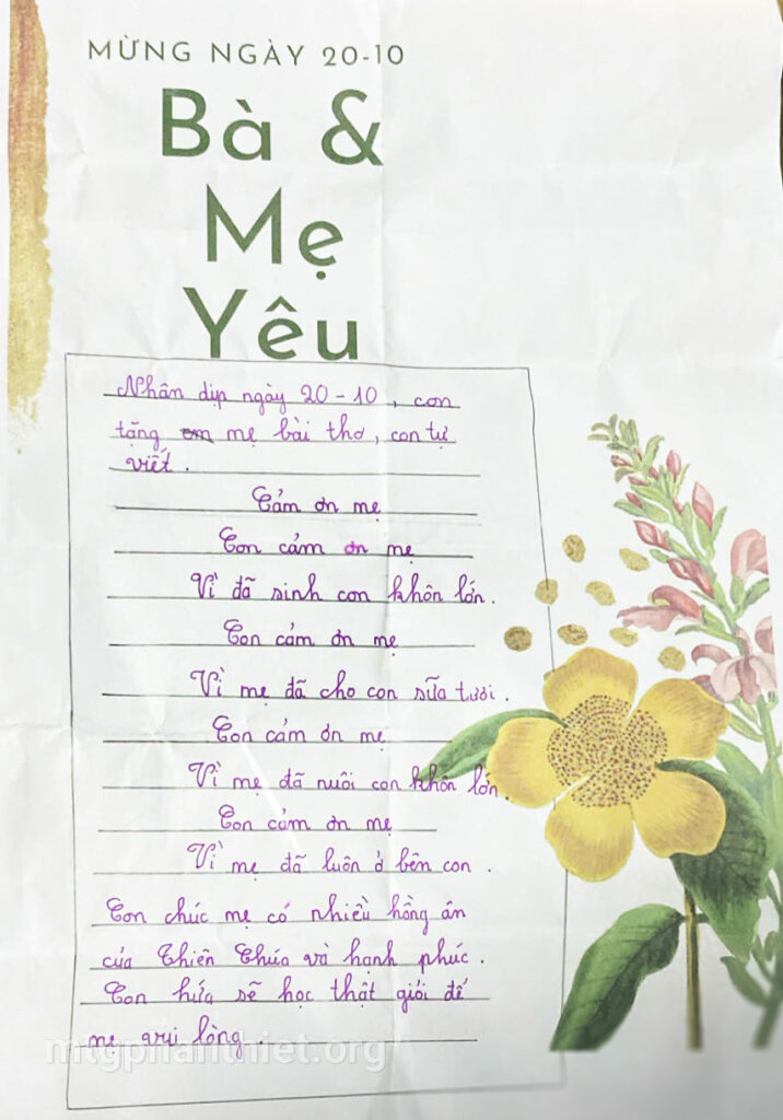 Trong chương trình, các em đã tự tay viết những lá thư gửi đến bà và mẹ, bày tỏ bao tâm tình chân thành, cảm động. Có những đôi mắt ngấn lệ khi người mẹ lặng nghe con đọc lên từng dòng chữ yêu thương, có em chỉ biết cúi đầu nức nở vì người thân giờ đã ở nơi xa thật xa. Những giọt nước mắt ấy – của nhớ thương, của biết ơn – như những hạt mầm tình yêu âm thầm lớn lên trong ân sủng Chúa.