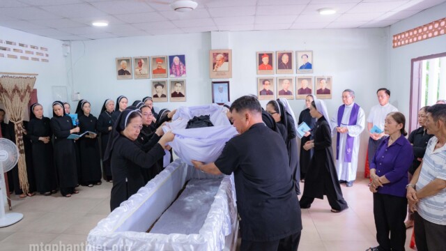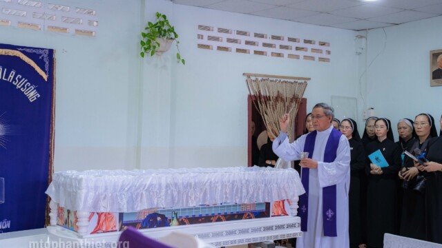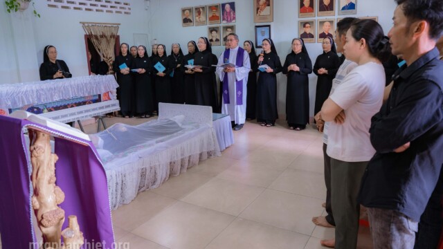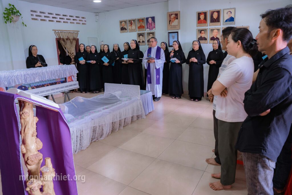 Lúc 10g00 ngày 28.10.2025 tại Nhà Mẹ Hội dòng, Cha Gioan Baotixita Trần Văn Thuyết – Tổng Đại diện Giáo phận Phan Thiết, cử hành Nghi thức tẫn liệm cho chị trong bầu khí trang nghiêm và xúc động. Ngoài ra, còn có sự hiện diện trân quý của cha Phanxicô Xaviê Huỳnh Thiên Vũ – Chánh xứ Tân Tạo, quý thân nhân và chị em trong Hội dòng đang cùng chị tạ ơn vì một đời hiến dâng đơn sơ, âm thầm mà trung tín.