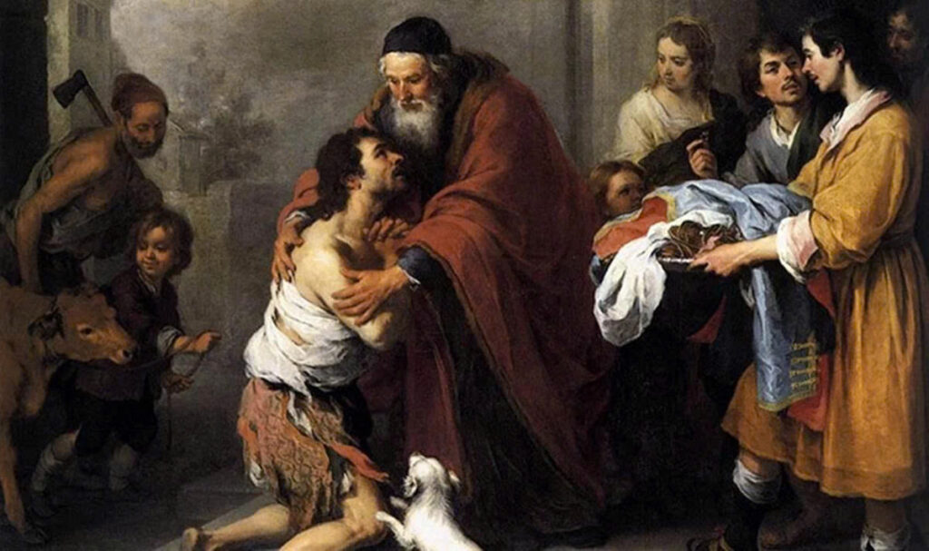 “Cha ơi!” cho con được cất lên hai tiếng thân thương này dù biết mình bất xứng. Từ lúc tan tiệc tới giờ con vẫn như người trong mộng. Sự thực vượt quá ước mơ của con. Lúc trở về, lòng sám hối của con còn vụ lợi lắm: Trở về chỉ để được no bụng mà thôi. Nhưng khi Cha dang rộng đôi tay ôm con chân tình nồng ấm, tiếng Cha hối hả thúc giục đầy tớ mở tiệc, thì con bị đánh động thực sự. Khác với sự thức tỉnh trong vườn chăn heo, lời xin lỗi dưới chân Cha mới thực sự phát xuất từ trái tim con. Nó được thốt ra trong tâm trạng hối lỗi chân thành. Ôi trái tim người Cha! Làm sao con có thể diễn tả hết được, Cha ơi!