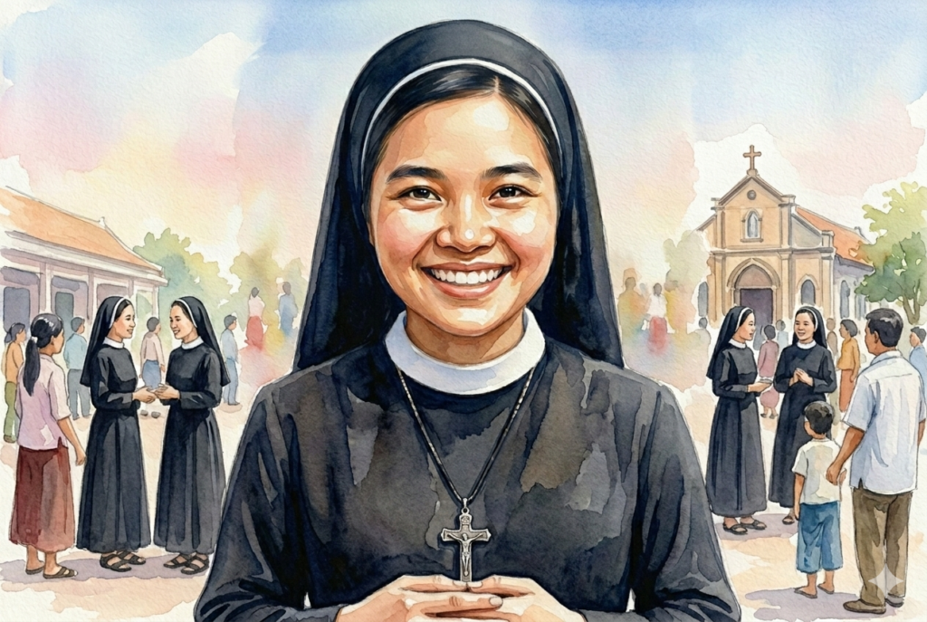 Tôi từng nghĩ mình “không có gì.” Nhưng giờ đây tôi hiểu: khi trao cho người khác sự bình an qua nụ cười, tôi đang trao chính Chúa. Khi sống vui tươi giữa đời thường, tôi làm chứng rằng đời tu không phải là mất mát, nhưng là hạnh phúc.
