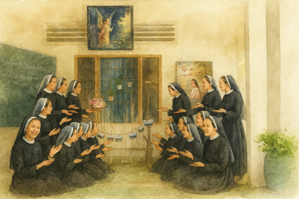 Sáng nay, khi chợt nhận ra ngày 20 tháng 11 đang đến gần, bao tâm tình về hành trình học hỏi và lớn lên trong ơn gọi lại nhẹ nhàng ùa về trong lòng em. Ngày Nhà Giáo – ngày tri ân những người gieo chữ, gieo tâm hồn – cũng là dịp để em nhìn lại quãng đường mình đã và đang được nuôi dưỡng, dẫn dắt bởi biết bao quý chị tiền bối kính yêu trong Hội dòng.