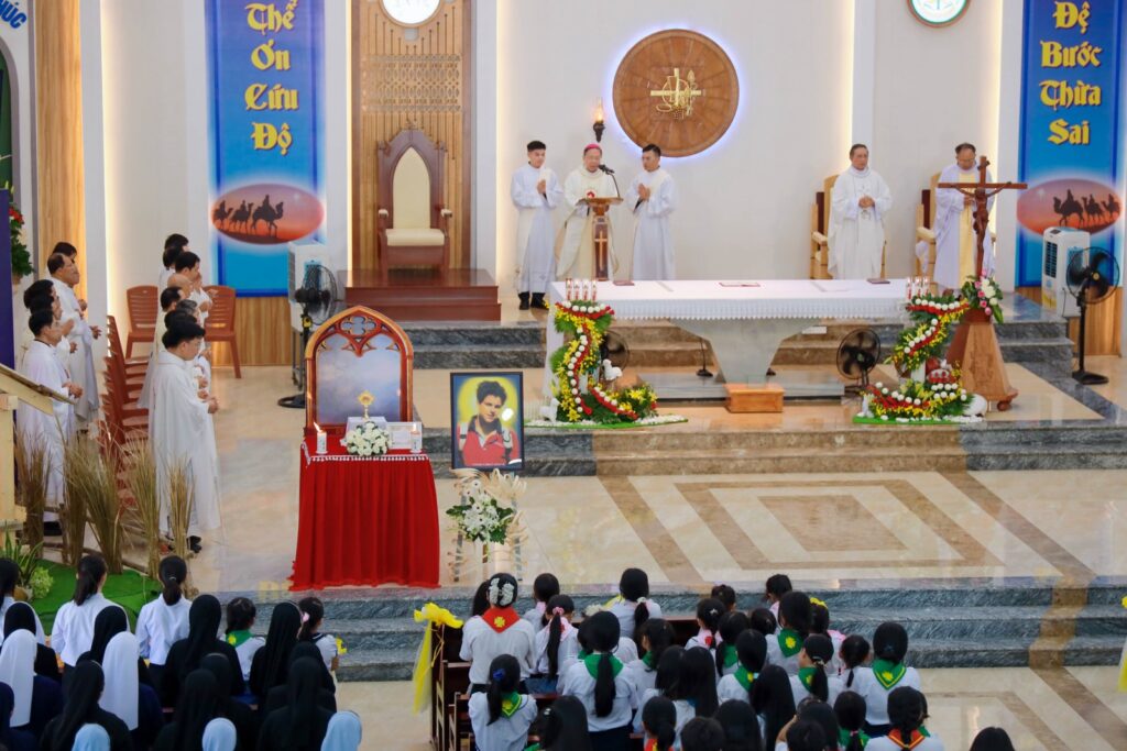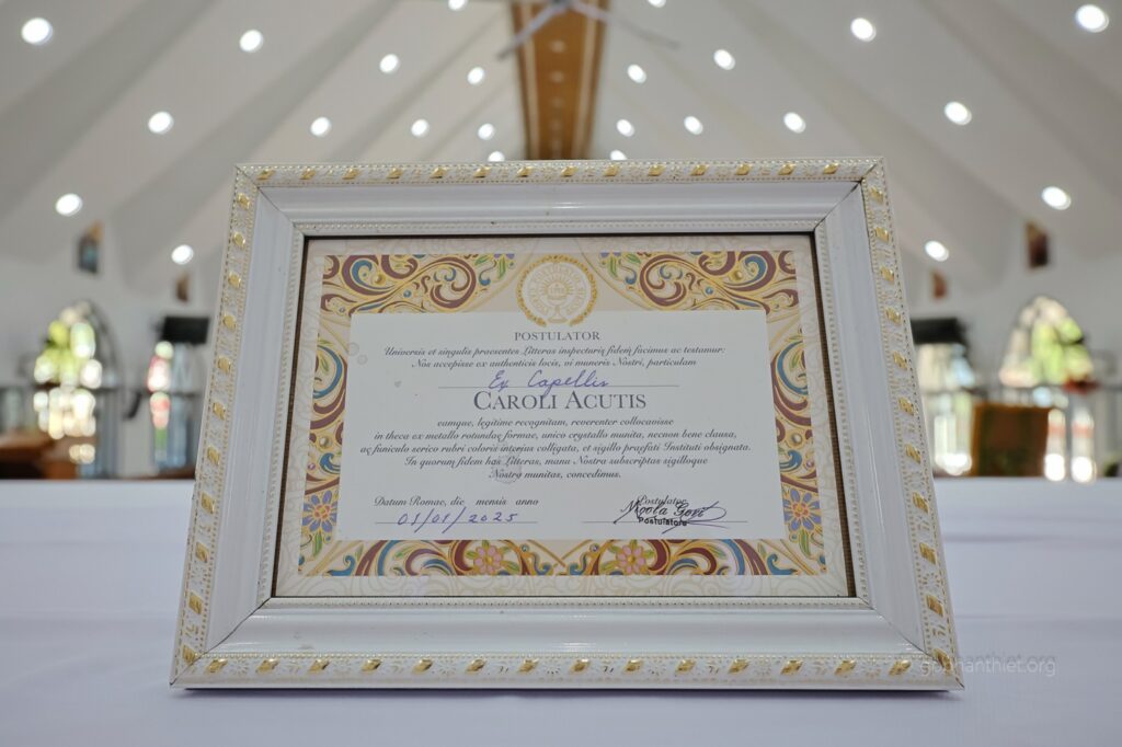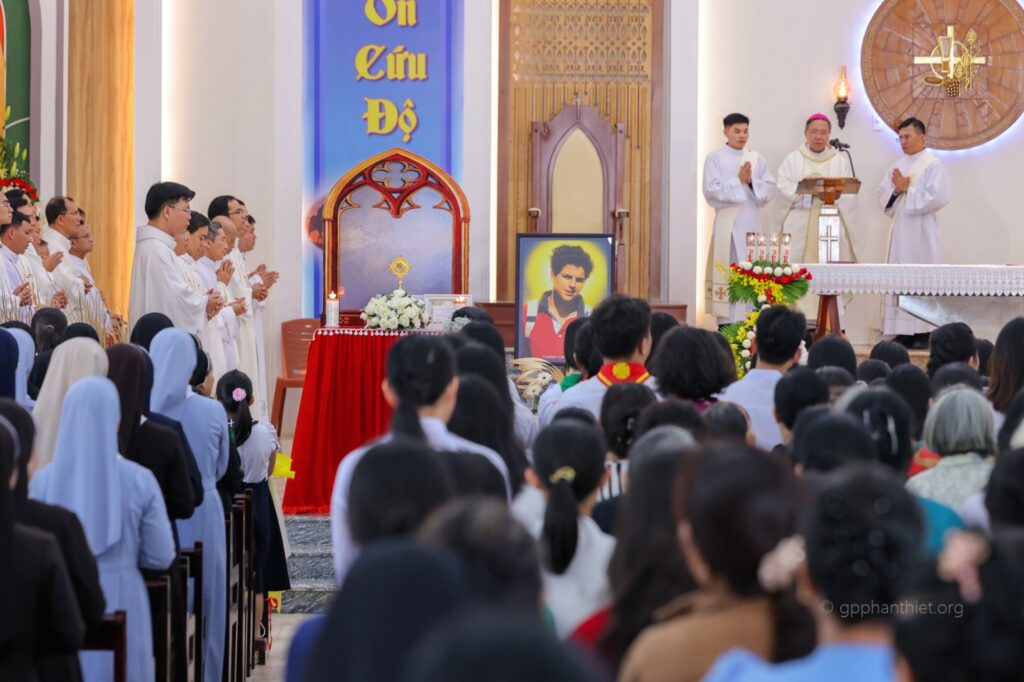 Sáng Chúa Nhật, ngày 28.12.2025, tại Nhà thờ Chính Tòa Giáo phận Phan Thiết, sau Thánh lễ Đại triều bế mạc Năm Thánh, cộng đoàn Dân Chúa đã long trọng cử hành nghi thức cung nghinh và tôn kính thánh tích của Thánh Carlo Acutis, do chính Tòa Thánh trao tặng cho Giáo phận. Đây là niềm vui lớn lao đối với Giáo phận Phan Thiết, đồng thời là dấu chỉ cho thấy sự quan tâm đặc biệt của Giáo Hội hoàn vũ đối với giới trẻ trong bối cảnh thế giới kỹ thuật số không ngừng phát triển.