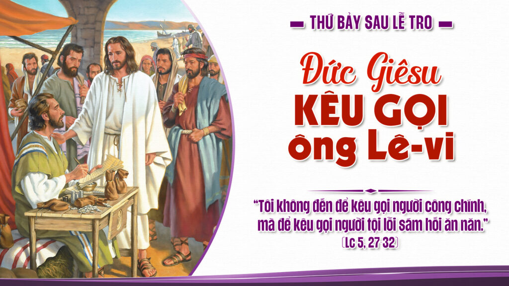 27Sau đó, Đức Giê-su đi ra và trông thấy một người thu thuế, tên là Lê-vi, đang ngồi ở trạm thu thuế. Người bảo ông : “Anh hãy theo tôi !” 28Ông bỏ tất cả, đứng dậy đi theo Người. 29Ông Lê-vi làm tiệc lớn đãi Người tại nhà ông. Có đông đảo người thu thuế và những người khác cùng ăn với các ngài. 30Những người Pha-ri-sêu và những kinh sư thuộc nhóm của họ mới lẩm bẩm trách các môn đệ Đức Giê-su rằng : “Sao các ông lại ăn uống với bọn thu thuế và quân tội lỗi?” 31Đức Giê-su đáp lại họ rằng : “Người khoẻ mạnh không cần thầy thuốc, người đau ốm mới cần. 32Tôi không đến để kêu gọi người công chính, mà để kêu gọi người tội lỗi sám hối ăn năn.”