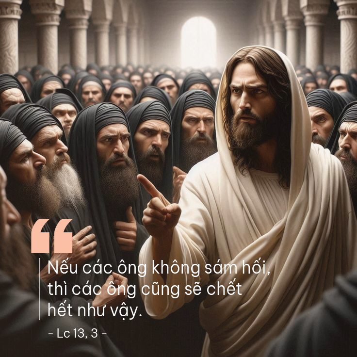 Tin Mừng hôm nay thuật lại sự kiện những người Do Thái chứng kiến cảnh những người Galilê bị Philatô giết, làm cho máu họ hòa lẫn với máu các vật hiến tế, hay chuyện mười tám người bị tháp Silôe đổ xuống đè chết. Khi chứng kiến như thế, họ cho rằng những người này bị Chúa phạt chết cách bất đắc kỳ tử vì tội lỗi của họ. Tuy nhiên, Chúa Giêsu nhân cơ hội này lại dạy cho họ bài học sám hối qua các sự kiện đó. Vì nếu không lo sám hối, cải tà quy chính thì họ cũng sẽ chết và bị hủy diệt y như vậy.