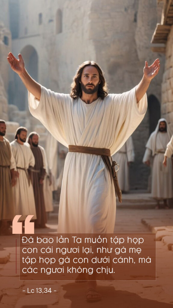 Thứ đến vì chúng ta chưa tin vào tình thương của Chúa đủ. Trong bài Tin Mừng hôm nay, Chúa Giêsu mô tả tình thương đó dưới hình ảnh “con gà mẹ ấp ủ gà con dưới cánh..” Chúa Giêsu đã kêu lên thảm thiết: “Giêrusalem, Giêrusalem..” Giêrusalem là trung tâm và là trái tim của dân tộc Israel. Nhưng khốn thay trái tim đó đã xơ cứng, không còn cảm nhận được tình thương Thiên Chúa, Chính Ngài phải biểu tỏ đến mức cao nhất qua cuộc khổ hình Thập giá và Phục sinh.