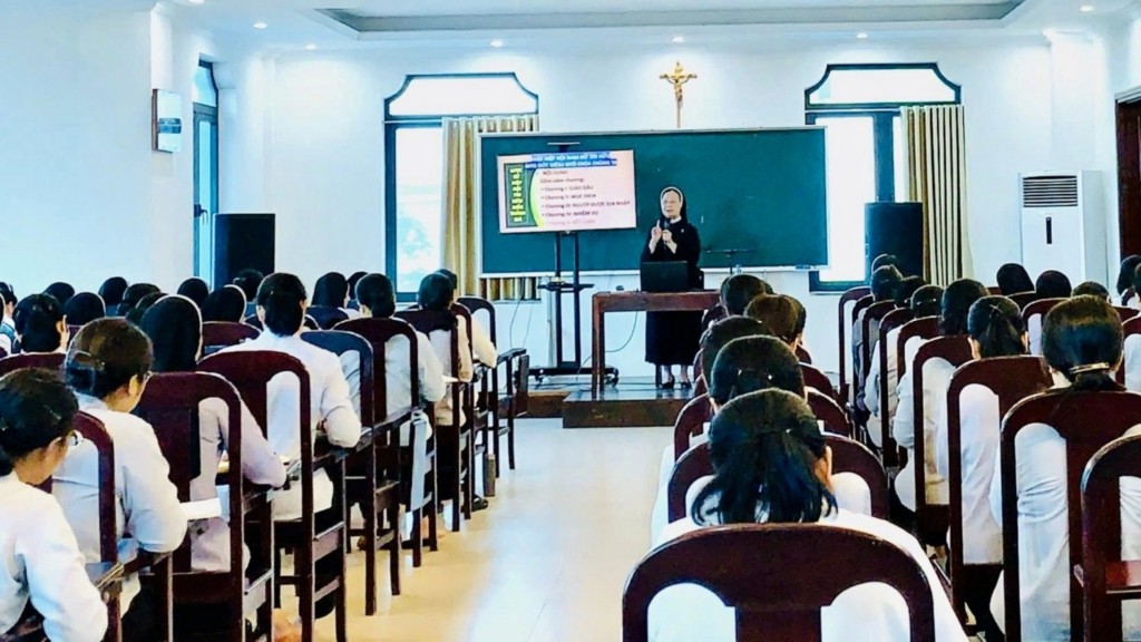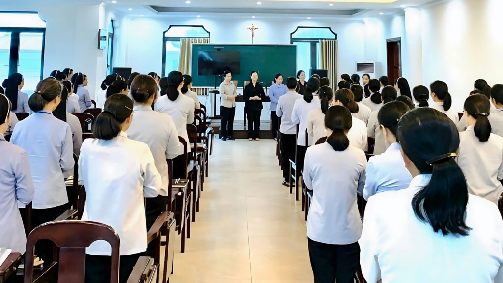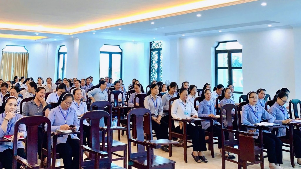 Trong bầu khí hân hoan của những ngày đầu thu, từ ngày 10–11/9/2025, tại Tòa Giám mục Phát Diệm, hơn 90 nữ tu đến từ các Hội dòng Mến Thánh Giá Hưng Hóa, Vinh, Phát Diệm, cùng với 23 chị em thuộc Hội dòng Mến Thánh Giá Hà Nội, đã quy tụ về tham dự khóa thường huấn dành cho các trợ úy Hiệp hội Tín hữu Mến Thánh Giá (HH THMTG) miền Bắc.