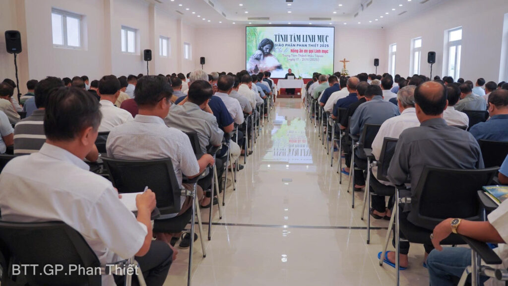 Từ ngày 17 đến 21 tháng 11 năm 2025, Linh mục đoàn Giáo phận Phan Thiết đang quy tụ tại Trung tâm Thánh Mẫu Tàpao để bước vào tuần tĩnh tâm mục vụ thường niên. Trong bầu khí linh thiêng của Linh địa Đức Mẹ Tàpao, Đức cha, quý cha và quý thầy phó tế đã dành những ngày thinh lặng, cầu nguyện và trở về với nguồn mạch ơn gọi của mình. Vị đồng hành trong tuần phòng là Đức cha Giuse Bùi Công Trác, Giám mục Phụ tá Tổng Giáo phận Sài Gòn.