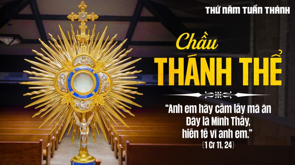 Lạy Chúa Giêsu Thánh Thể, có biết bao lần chúng con đã nghe những từ ngữ rất quen: Thánh Thể, hy tế, tình yêu, phục vụ, khiêm nhường. Nhưng càng quen, chúng con lại càng dễ đi qua mà không còn rung động. Chúng con dễ nói về tình yêu của Chúa, nhưng ít khi để cho tình yêu đó làm mình tan chảy. Chúng con dễ tin rằng Chúa hiện diện trong Bí tích Thánh Thể, nhưng ít khi sống như người thật sự tin có Chúa đang ở đó. Chúng con dễ quỳ trước Nhà Tạm, nhưng lòng lại vẫn đầy những ồn ào, tính toán, tự ái, hờn giận, tham vọng và nguội lạnh. Đêm nay, xin Chúa đừng để chúng con ở ngoài mầu nhiệm. Xin cho chúng con đi thật sâu vào tình yêu của Chúa.