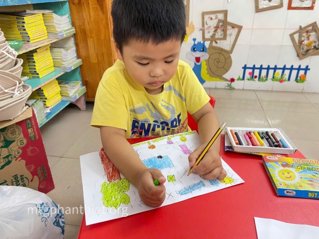 Sau chuyến đi, các bé được mời gọi vẽ lại điều mình thích nhất. Có bức vẽ siêu thị, có bức vẽ món đồ vừa mua, có bức chỉ là ông già Noel hay cây thông Noel theo trí tưởng tượng trẻ thơ. Qua nét vẽ non nớt ấy, chuyến trải nghiệm không dừng lại ở siêu thị, mà tiếp tục được ghi nhớ trong cảm xúc của các em.